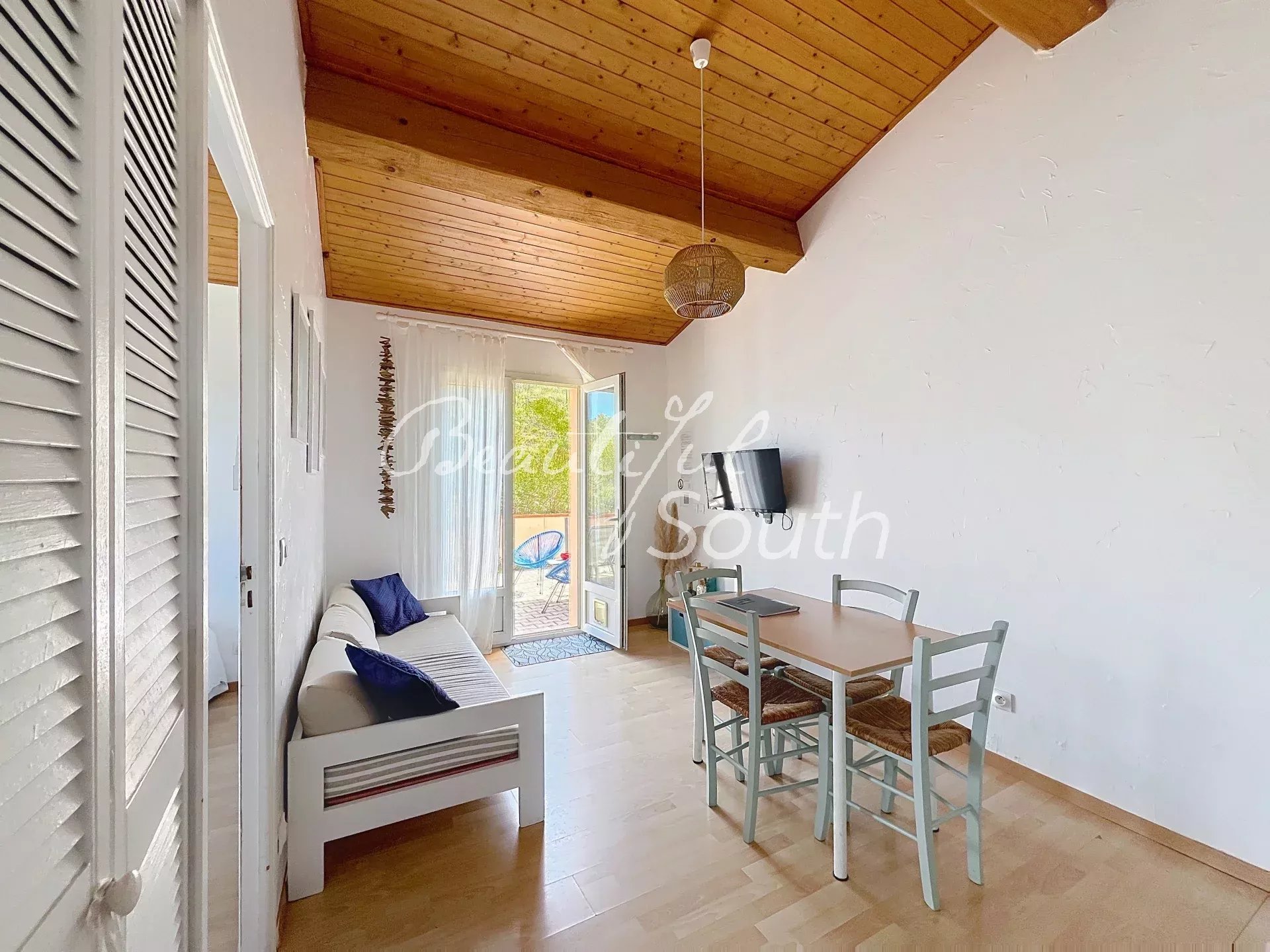 Communal areas planted with trees, a large secure swimming pool (10×5 m, salt), shaded patios, a pétanque court, relaxation areas and parking complete the offer, creating an atmosphere of conviviality and relaxation.