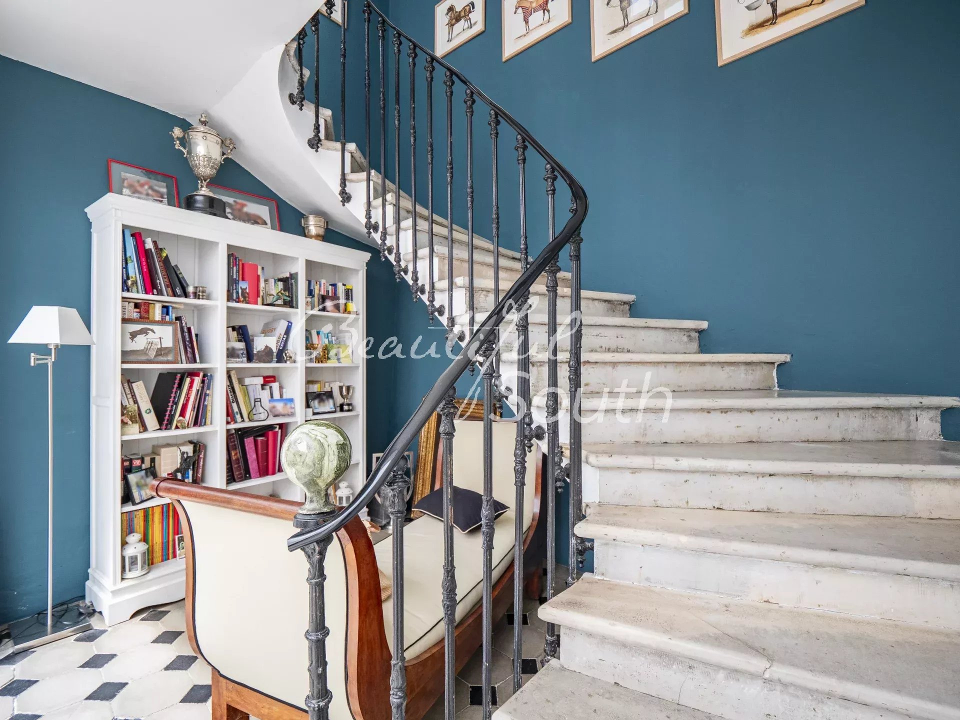 The original staircase leads to a central gallery and a succession of four large bedrooms, one of which is a spectacular 41 m². Two spacious bathrooms (16 m² and 15.6 m²) and airy hallways elegantly structure the first floor.