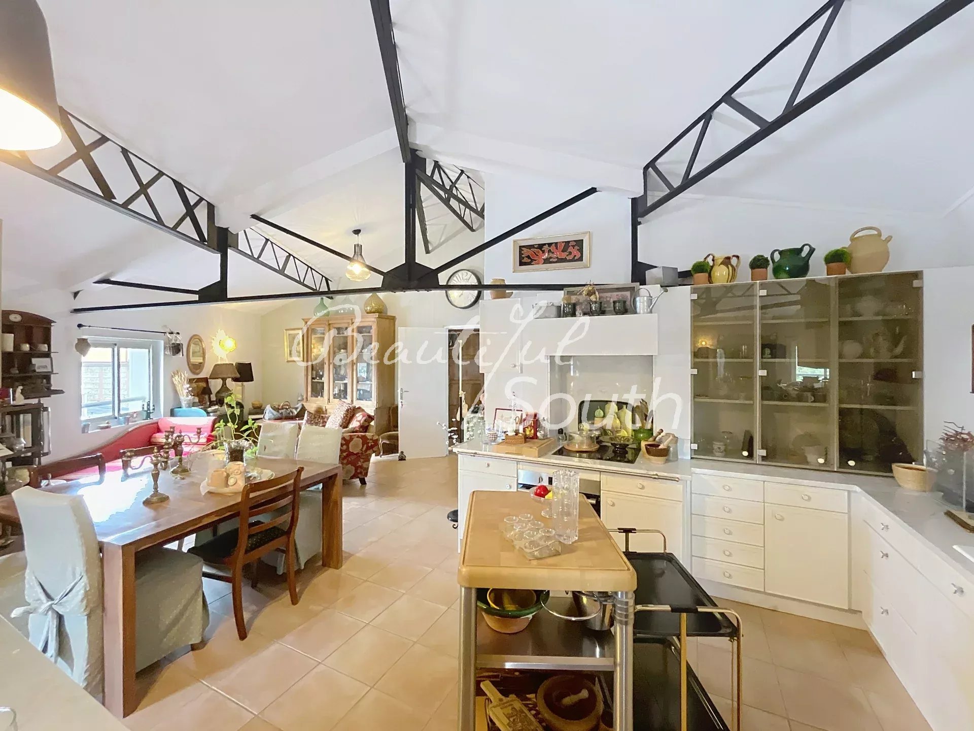 Le deuxième étage, également d’environ 140 m², impressionne par ses volumes et sa majestueuse charpente Eiffel. Actuellement composé d’une grande salle de réception, de deux chambres, d’un bureau, d’une salle d’eau et d’un WC, cet espace offre un potentiel exceptionnel : il est parfaitement envisageable d’y créer trois suites indépendantes, idéales pour un projet de chambres d’hôtes haut de gamme ou pour accroître la capacité d’accueil.