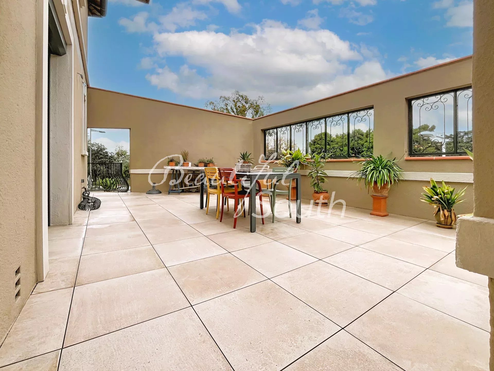 Le premier étage, d’environ 140 m², dévoile un charme remarquable. Une superbe pièce de vie baignée de lumière s’ouvre sur un patio sans vis-à-vis, véritable havre de paix. La cuisine, moderne et entièrement équipée, donne accès à une vaste terrasse idéale pour recevoir. Deux belles suites, un bureau et un WC complètent cet étage élégant et fonctionnel.