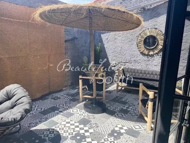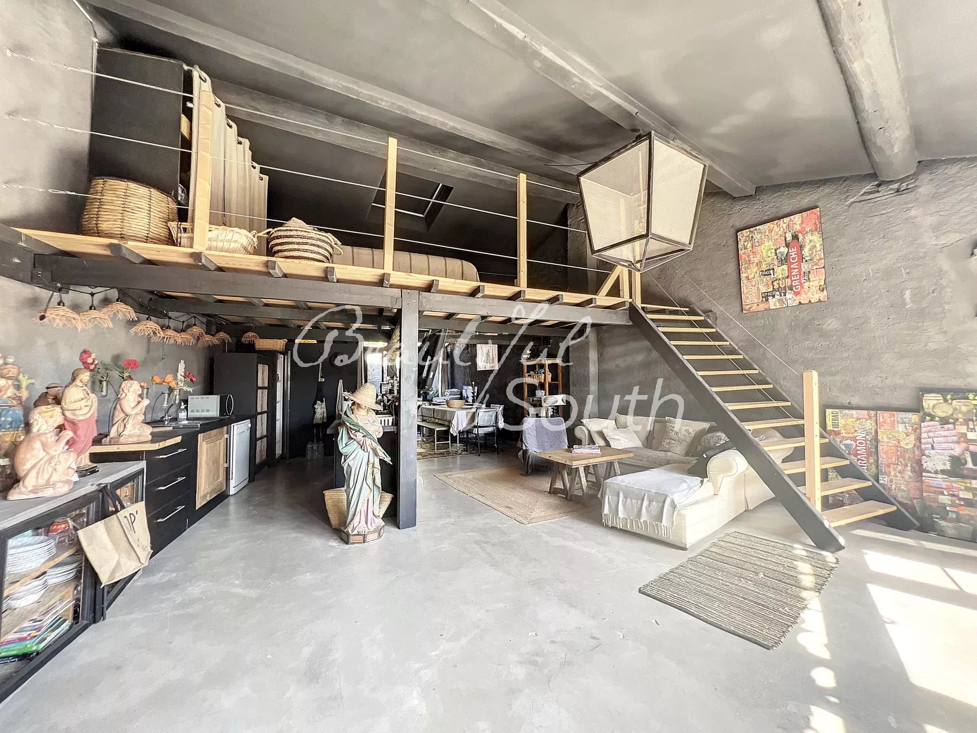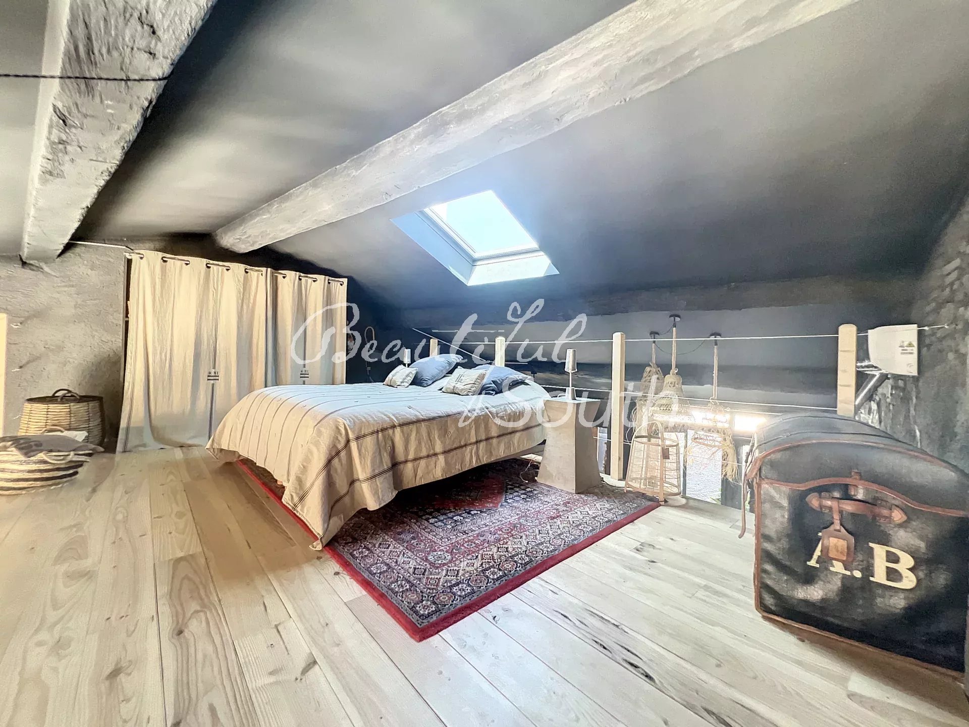 L'espace de vie de cette maison atypique et de caractère est située au 2ème étage et consiste en une grande et lumineuse pièce de vie exposée plein sud avec cuisine ouverte et salon, le tout ouvert sur 2 terrasses de type tropéziennes, à l'abri des regards - une terrasse au nord et une terrasse au sud permettant de profiter pleinement des extérieurs été comme hiver. Ce niveau dispose également d'une salle d'eau avec WC. La chambre principale est située en mezzanine.